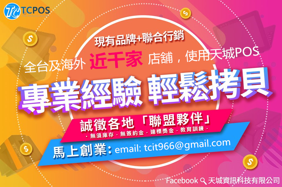 加盟天城POS,銷售pos機,一人亦可立即創造營收,